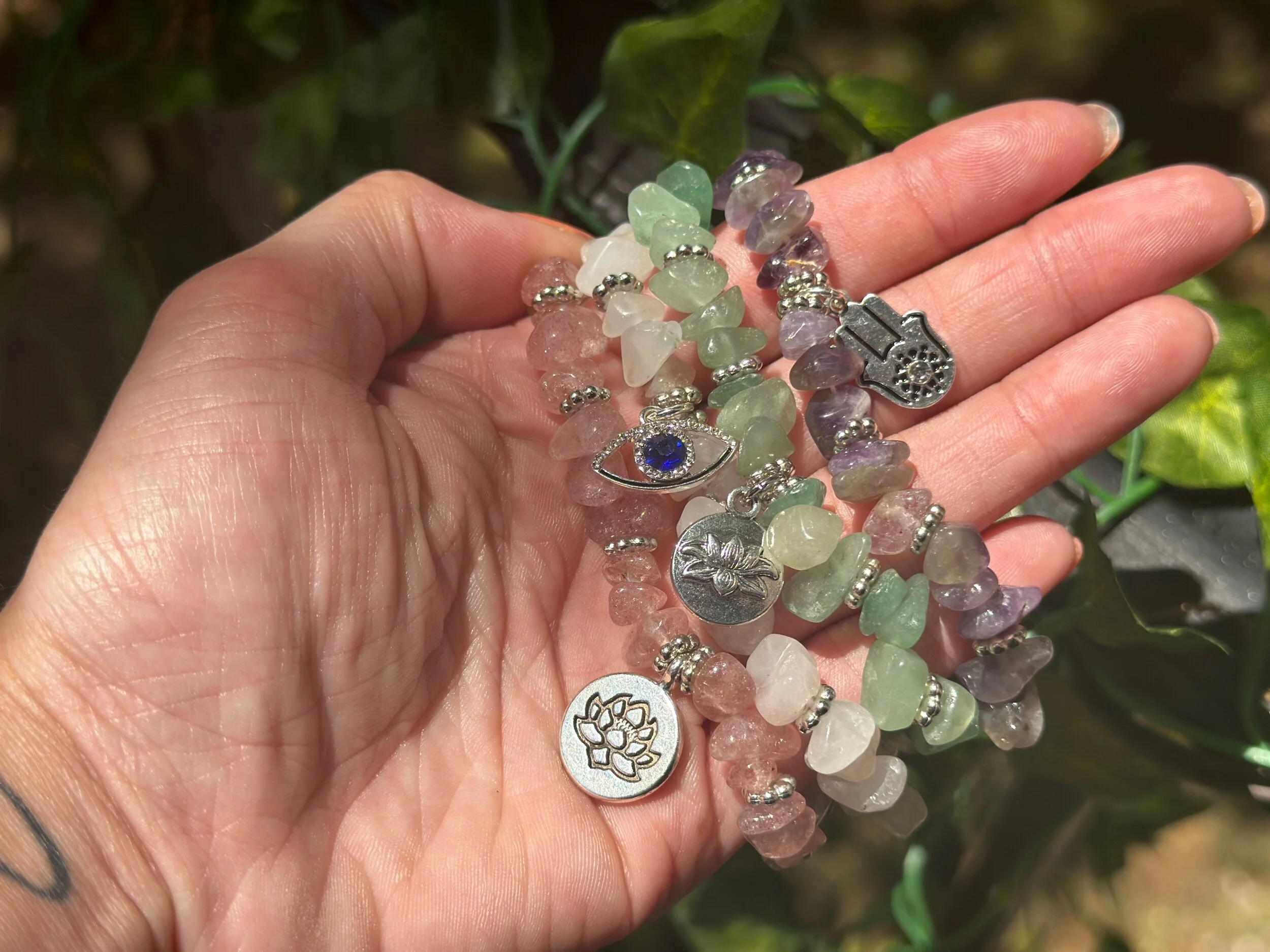 Categories: All Necklaces Earrings Bracelets All / Fancy Jasper Dagger Bracelet $15.00 Sold out Zodiac Bracelets $10.00 Aventurine Lotus Flower $10.00 Amethyst Hamsa Hand $10.00 Clear Quartz Evil Eye $10.00 Rose Quartz Lotus Flower $10.00 Unikate $10.00 Sold out Mookaite $10.00 Tree Agate $10.00 Serpentine $10.00 Turquoise Beaded Bracelet Wrap $50.00 Hand-beaded Bracelet Wrap $20.00